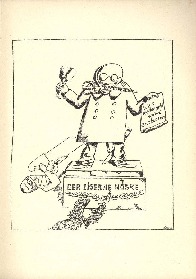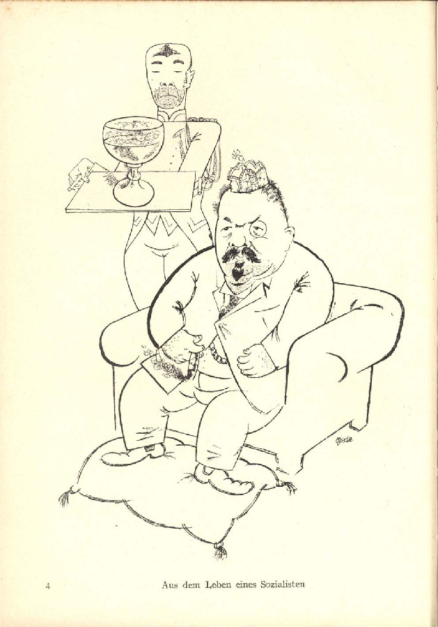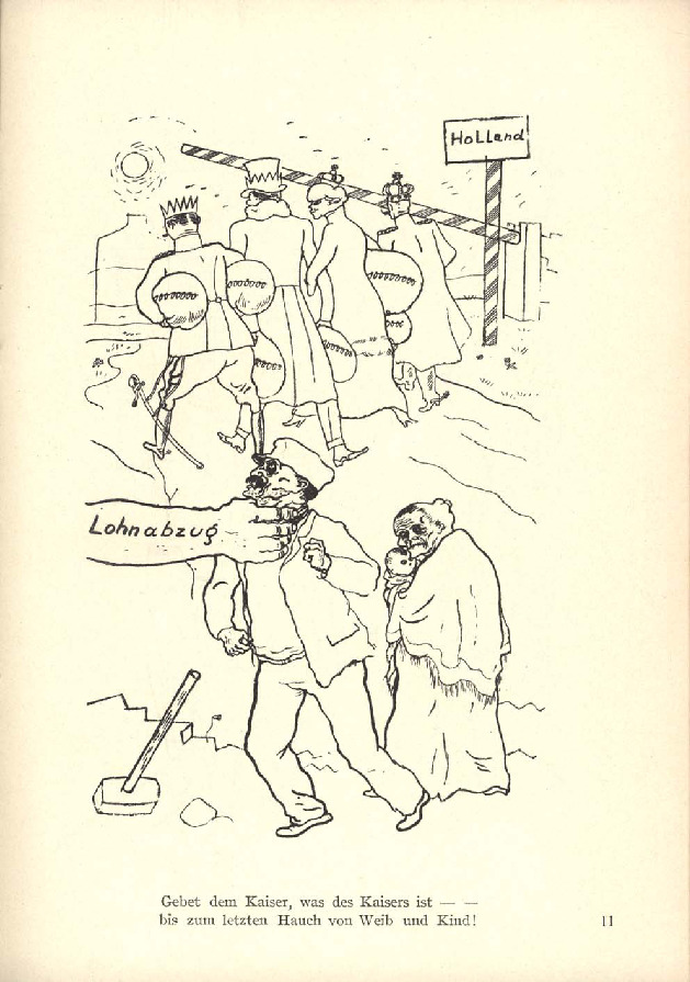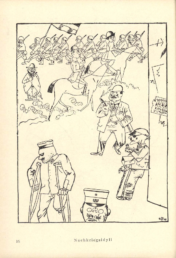 In den 1920er Jahren fand George Grosz (1893-1959) internationale Anerkennung als einer der bedeutendsten kritischen deutschen Künstler. Grosz veröffentlichte diese Serie politischer Karikaturen auf dem Höhepunkt seines Engagements in der Berliner Dada-Szene. Sie gehörte zu einer Reihe von Grosz‘ Mappen, die in Wieland Herzfeldes 1916 gegründetem Malik-Verlag erschienen, einem pazifistischen, revolutionären Verlag, der auch zahlreiche Dada-Veröffentlichungen herausbrachte. Die 57 Zeichnungen sind mit der revolutionären und gegenrevolutionären Stimmung der frühen Nachkriegszeit aufgeladen und enthalten Karikaturen von Persönlichkeiten wie Friedrich Ebert als fettem, Zigarre rauchenden Spießer mit Kaiser Wilhelm-Bart. In dieser Bildergalerie sind einige Beispiele aus der Mappe zu sehen.