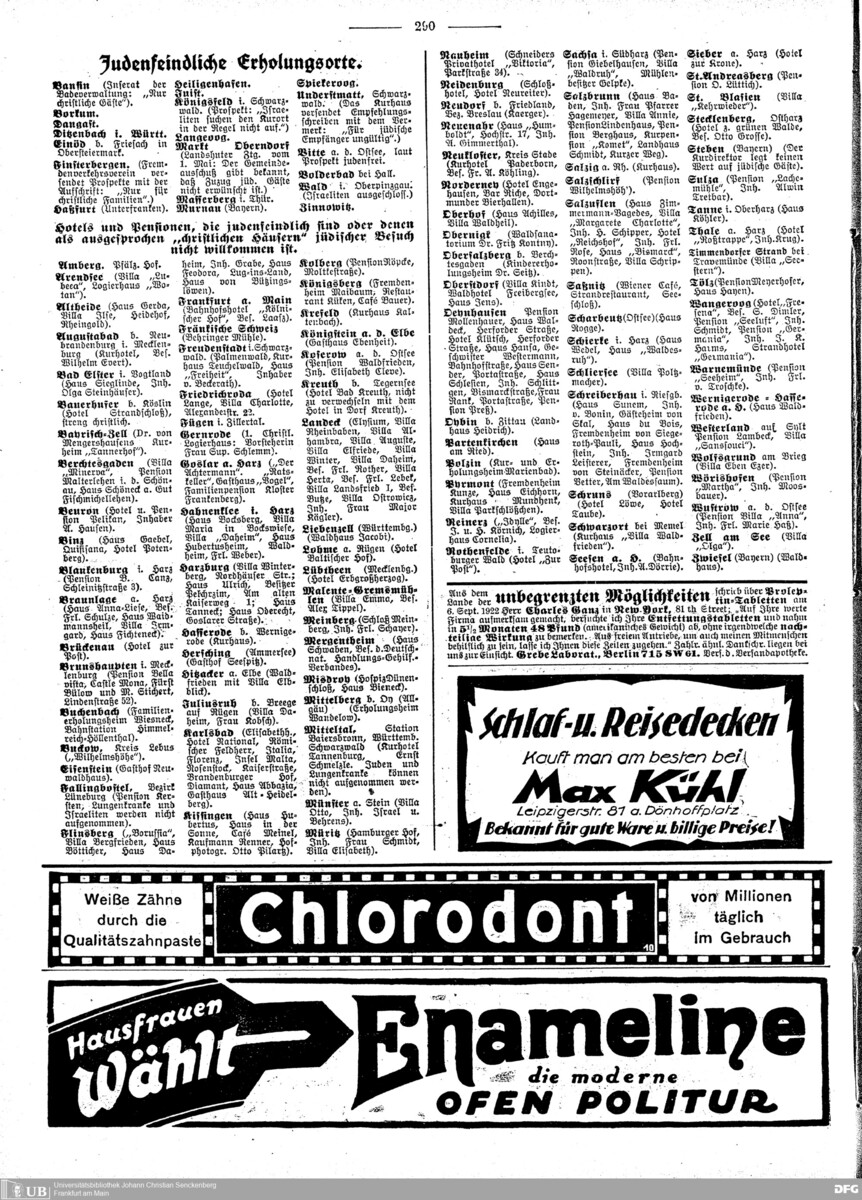 Erholungsorte. Hotels und Pensionen, die judenfeindlich sind oder denen als
