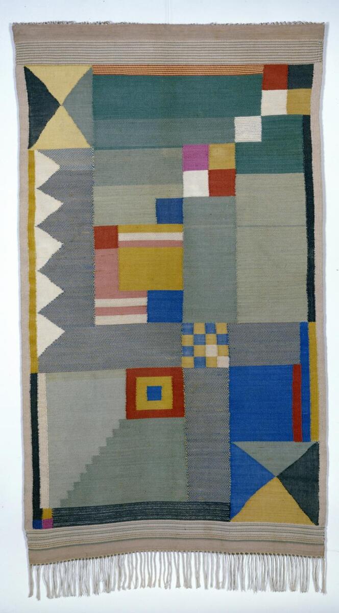 Eine der produktivsten Werkstätten am Bauhaus war die Weberei. Die größtenteils weiblichen Studenten experimentierten hier sowohl mit traditionellen handwerklichen als auch industriellen Webtechniken und modernen Kunstfasern, die vor allem als Industrietextilien zum Einsatz kamen. In der Farbgebung und Formensprache der Bauhaus-Stoffe wird der Einfluss der Bauhaus-Meister Johannes Itten, Paul Klee und Wassily Kandinsky besonders deutlich. Der hier abgebildete Teppich ist eine Arbeit von Benita Koch-Otte, die von 1920 bis 1925 am Bauhaus studierte. Er stellt ein gutes Beispiel für die stärker künstlerisch-handwerklich orientierten Textilien aus der Frühphase der Bauhaus-Weberei dar. Koch-Otte leitete später die Weberei in den Bodelschwinghschen Anstalten Bethel.