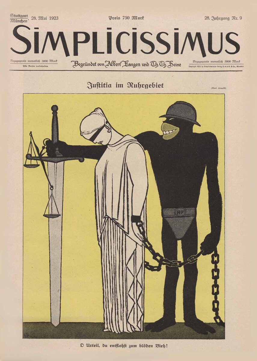 „Justitia im Ruhrgebiet”, Karikatur aus dem Simplicissimus (Mai 1923)