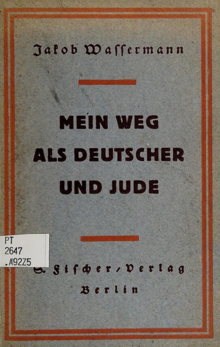 Source: Jakob Wassermann, Portrait by Ottokar Achtschin, 1905, Jüdisches Museum Franken, online at Fürth Wiki: https://www.fuerthwiki.de/wiki/index.php/Datei:Jakob_Wassermann,_jmf_01898.jpg and title page, Mein Weg als Deutscher und Jude, Fischer Verlag, Berlin, 1921, available online from the Internet Archive, urn:oclc:record:1157140449