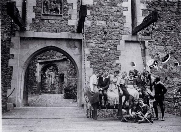 Like the German youth movement which emerged at the end of the nineteenth century, the Jewish youth movement comprised numerous associations with a romantic, back-to-nature focus. The Wandervogel was one of the most popular of the romantic, back-to-nature German youth movements. As they became more exclusionary and focused on an ethno-nationalist German identity, Jewish groups such as Blau-Weiss, Bund für jüdisches Jugendwandern in Deutschland were formed that would come to play a significant role in Jewish education, community organization, and Zionism. This 1919 photograph shows male and female members of a Jewish hiking and sports club on an outing to Medieval Grodziec castle in Lower Silesia.
