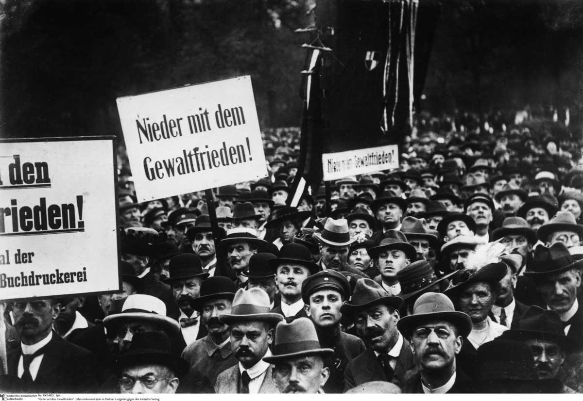 Source: “Down with the peace of violence!” - Mass demonstration in Berlin's Lustgarten against the Treaty of Versailles, 1919.